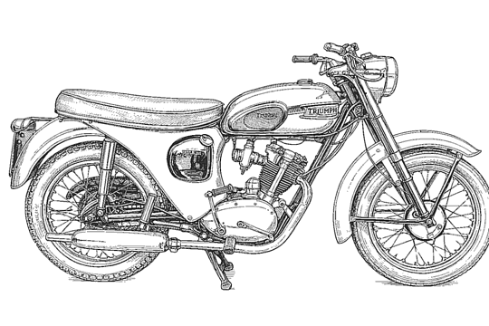 Performance was of course much more impressive than the Tiger Cub. Acceleration was rapid and top speed of 80 plus could be reached in no time at all. The bike was reliable as Mike rode it from Leicester to Perranporth Cornwall and back in 1965 with no problems apart from rider fatigue and a numb bum. The bike’s main let down was its handling, with the legendary Triumph instability at the rear end. Why Triumph never rectified this known fault is baffling. It is a fact that the otherwise excellent Triumph parallel twin engines were fitted to many Norton Featherbed and BSA frames to create “Triton” and “Tribsa” specials, but nobody ever fitted any other manufacturer’s engines into a Triumph frame. Triumph had experimented briefly with a frame with twin front down tubes, similar if not the same as the BSA twins. BSA was in the same commercial group as Triumph and had also absorbed Sunbeam and Ariel. An example of this frame can be seen in the 1963 film “The Great Escape” where a 1961 Triumph Trophy 650cc twin, disguised as a German Army bike, was ridden by Steve McQueen. The actual machine is on display at the Triumph factory visitor centre at Hinckley Leicestershire, though it would have been produced at Triumph’s production facility at the Meriden Works in Coventry.