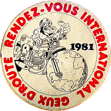 Left: the badge of the 1st Gueux d'Route rally of 1981, an international invitational event bringing together all the subscribers of the magazine, and organized by yours truly in Saint-Nectaire, Auvergne;