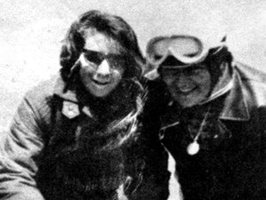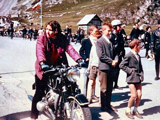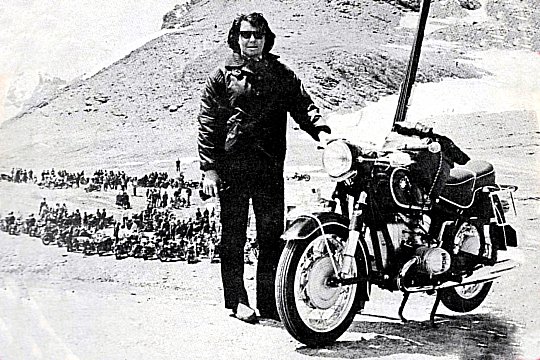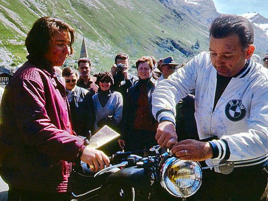 Olympic ski champion Marielle Goitschel at the summit of the Iseran with her brand-new BMW R50, presented by BMW France and the BMW Club of France.