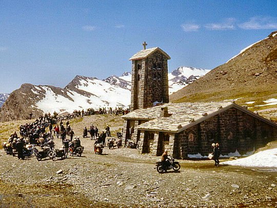 Little by little, it rose in a powerful, resonant murmur, winding its way without haste or strain along a dusty track, conquering the 2,770 metres of the summit. There, it formed a semicircle before the chapel of Notre-Dame de Toute-Prudence, to the astonishment of many motorists, who wondered aloud why all the motorcyclists of France — or at least a very large part of them — had chosen to gather in such a place.