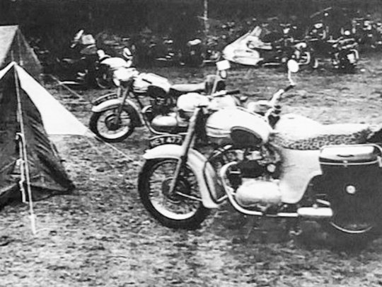 Here is the sole picture I have in my archive of the 1962 Dragon rally. This rare image perfectly illustrates the motorcycle outfits of British bikers of the time.
