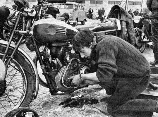 Going to the Elefantent rally on an old vintage motorbike, as the venerable Robert Sexé has always done, is not without problems, as shown by the French owner of this 500 Terrot RSS in the middle of an impromptu outdoor mechanical session