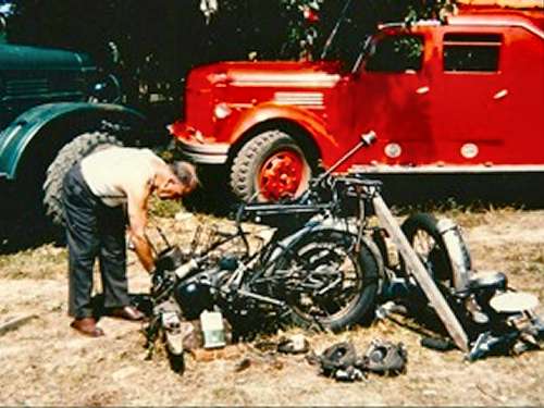 Here is a photograph of the Willy Ramsey's Vincent in numerous pieces. What you might call a slight problem!![]()