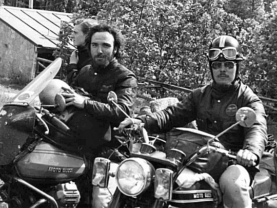 Jean-Louis Beltram, photographed here on his trusty Moto Guzzi at the campsite, the day before the incident. Little did he know that the next day he would be arrested, taken to the station, and given an Italian-style beating.