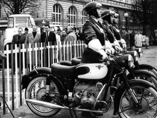 In the late 50s, Ratier decided to modify the 600 C6S model to produce a motorcycle which would enable the gendarmerie to pursue modern vehicles such as the Citroen DS, (launched in 1955), that were becoming ever faster and less easy to catch.