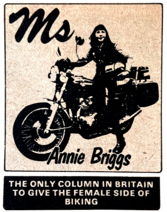 Annie Briggs was a sub editor and columnist on the staff of Motor Cycle Weekly. She was an active member of WIMA, a died-in-the-wool motor cyclist and a valued colleague.