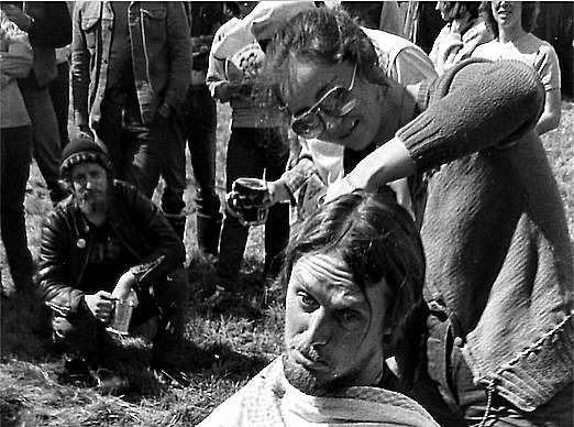 Alan Gilmore was having his hair cut but I wouldn't let Windy Prin do it as he could barely stand up at the best of times. Graham Butler is looking on and Big Mick (Twits MCC) with his leg in plaster.