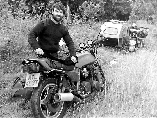 This is Karl de Vany, an Aussie who arrived at the Motor Cycling Weekly office, talked his way into a subbing job and bought the CB900 he's pictured with; my XS1100/Gemini in the background.
