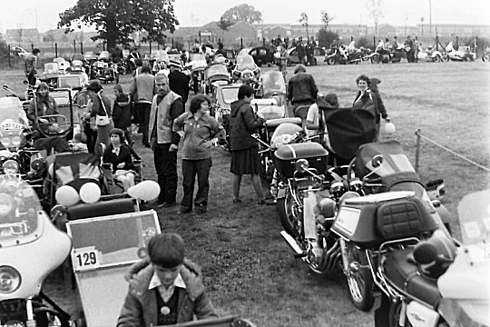 My craziest Jumbo memory concerned a strapping teenage passenger in an elderly chap's Monza (he was probably younger than I am now!) who, as two mayors and assorted press prepared to wave us off from Chelmsley Wood Hospital, punched a hole in the screen, stood up, dropped his kecks and vigorously relieved his tension. Fortunately a nurse was there to advise that he was best left to it. The mayors and their ladies duly waited, he finished, the nurse tidied him up. The lad sat down, Buster from Watsonian handed the rider his card with the promise of a complimentary replacement screen and the run started. As I recall there was talk of making this the standard starting procedure.
